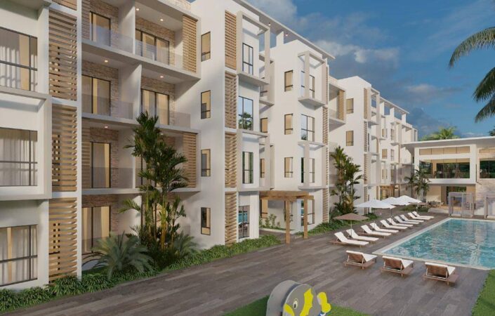 El Proyecto: Exclusivo edificio de baja densidad con solo 32 unidades de 1 y 2 habitaciones (+ estudio), ubicado en el corazón de Cap Cana.